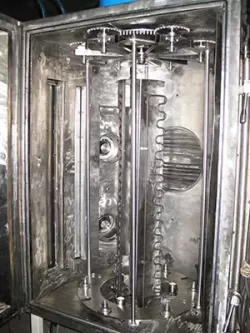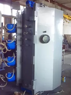 Vacuum chambers are made of structural materials, including stainless steel, with a wall thickness of up to 12 mm (for round chambers). The chamber has a number of technological elements located on the walls of the vacuum chamber: